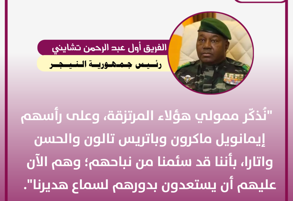“نُذكّر ممولي هؤلاء المرتزقة، وعلى رأسهم إيمانويل ماكرون وباتريس تالون والحسن واتارا، بأننا قد سئمنا من نباحهم؛ وهم الآن عليهم أن يستعدون بدورهم لسماع هديرنا”.