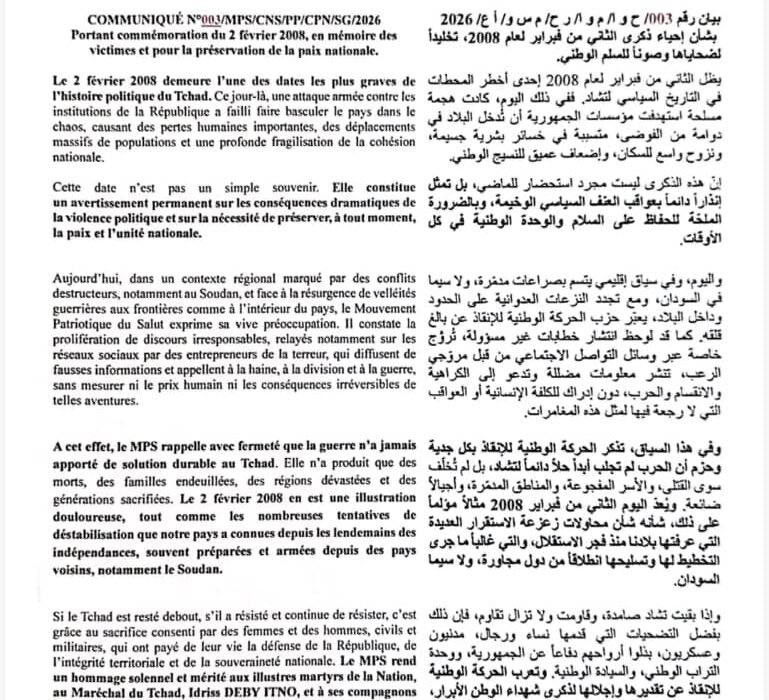 Par Décret N°067/PR/2026 du 06 février 2026, Dr. MAHAMAT KHATIR ISSA est nommé Conseiller Spécial à la Présidence de la République. بموجب المرسوم رقم 067/ر ج/2026 الصادر في 6 فبراير 2026، تم تعيين الدكتور محمد خاطر عيسى مستشاراً خاصاً برئاسة الجمهورية.