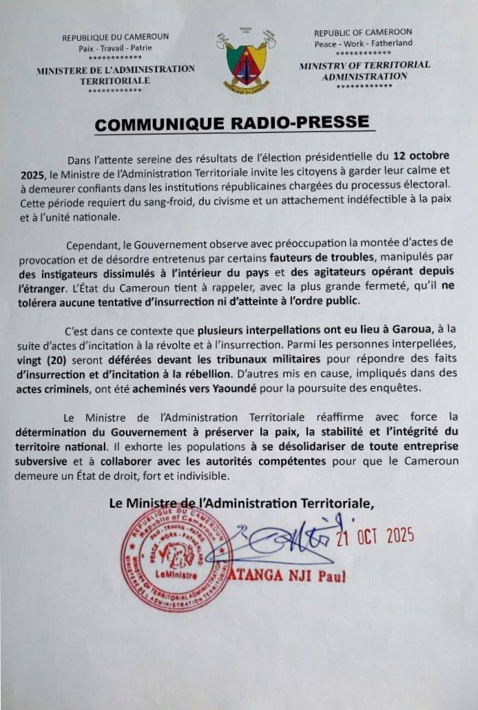صدر في ياوندي بتاريخ 21 أكتوبر 2025
