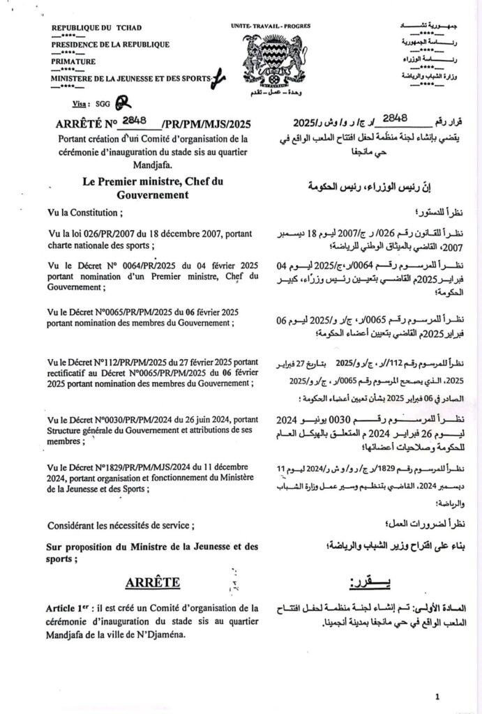 تم إنشاء لجنة منظمة لحفل افتتاح الملعب الواقع في حي مانجفا بمدينة أنجمينا.