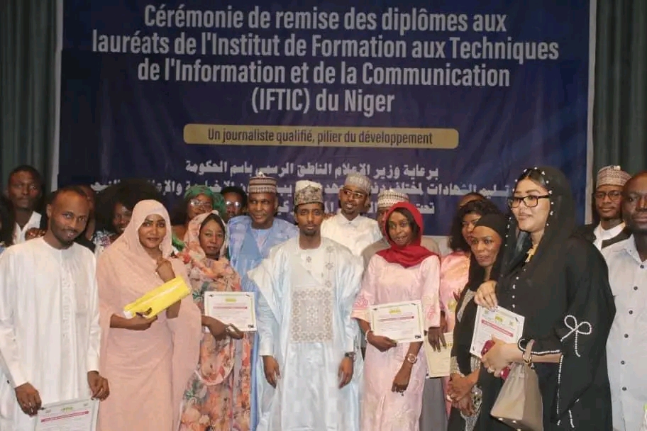 حت الرعاية السامية لوزير الإعلام الناطق الرسمي باسم الحكومة قاسم شريف محمد أقامت وزارة الإعلام حفلا لتسليم شهادات لمختلف دفعات معهد التدريب للفنون الإخبارية والإعلامية بدولة النيجر الاحتفال جاء تحت شعار الصحفي المؤهل ركيزة أساسية للتنمية.