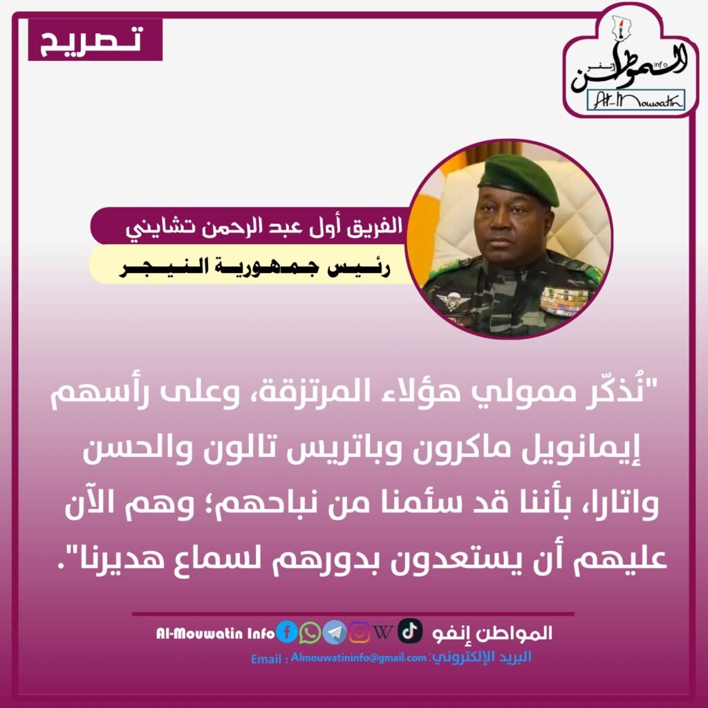 “نُذكّر ممولي هؤلاء المرتزقة، وعلى رأسهم إيمانويل ماكرون وباتريس تالون والحسن واتارا، بأننا قد سئمنا من نباحهم؛ وهم الآن عليهم أن يستعدون بدورهم لسماع هديرنا”.