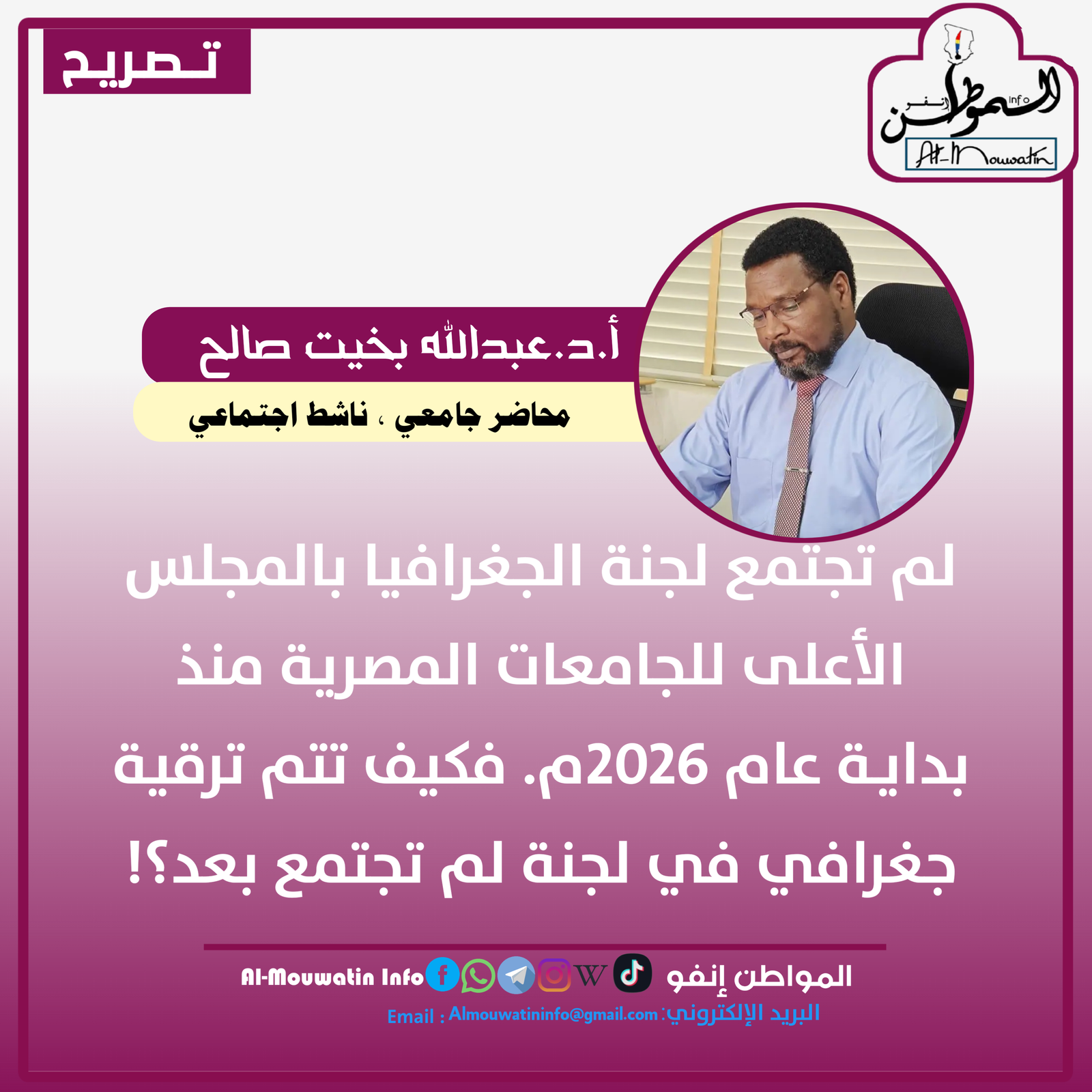 سياسية#الحركة_الوطنية_للإنقاذ ذكرى حرب 02 فبراير 2008 almouwatin infoأسبوع واحد agoأسبوع واحد ago01 mins تصفّح المقالات Previous: #النيجرNext: #مرسوم اترك تعليقاً إلغاء الردلن يتم نشر عنوان بريدك الإلكتروني. الحقول الإلزامية مشار إليها بـ *التعليق * الاسم * البريد الإلكتروني * الموقع الإلكتروني احفظ اسمي، بريدي الإلكتروني، والموقع الإلكتروني في هذا المتصفح لاستخدامها المرة المقبلة في تعليقي.