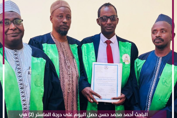 الباحث أحمد محمد حسن حصل اليوم على درجة الماستر (2) في القانون العام من جامعة الملك فيصل بتشاد بتقدير “جيد جداً”